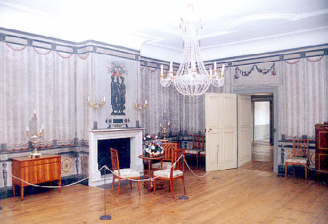 Das Mobiliar zeigt bei den Stühlen (1804) bereits neogotische Einflüsse, |