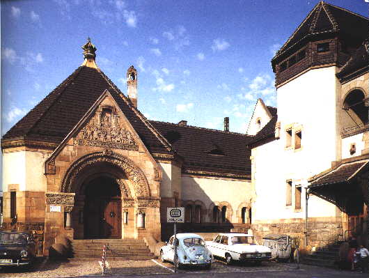 Der 1901-1904 errichtete Bahnhof in Worms ist ein gutes Beispiel für den unter Wilhelm II. bevorzugten staufischen Monumentalstil
