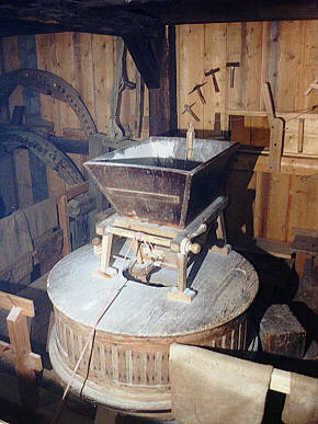 besteht aus den Mühlsteinen, dem Einfülltrichter, sowie