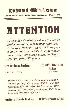 Die Beschlüsse der Potsdamer Konferenz vom 2. August 1945 zogen nach sich, dass Deutschland völlig demilitarisiert wurde und nur noch "Landwirtschaft und Friedensindustrie für den inneren Bedarf (Verbrauch)"betreiben durfte. Die französische Militärregierung übernahm die Lenkung der gesamten Wirtschaft in ihrer Zone. Leitprodukte wie Kohle, Stahl, Eisen, Holz oder Leder durften nur noch ausschließlich nach Frankreich exportiert werden. Die Franzosen waren nur an den eigenen Bedürfnissen nach Wiederaufbau und Entschädigung ausgerichtet und nahmen deshalb keine Rücksicht auf die Menschen in den Besatzungszonen. Nach zahlreichen Demontagen und Requisitionen nach Frankreich war 1947 ein Zustand entstanden, der fast koloniale Züge trug und die wirtschaftliche und soziale Situation der Menschen in der französischen Zone ernsthaft bedrohte. Ein besonderer Stellenwert kam auch der Energiewirtschaft zu. Die Militärregierung stellte den Sektoren nur sehr knapp bemessene Globalkontingente an Strom zur Verfügung, die ständig durch verschiedene Faktoren gefährdet waren. Besonders nachteilig wirkte sich die Abhängigkeit der Laufwasserkraftwerke von der Wasserführung des Rheins ab. Durch die auftretenden Versorgungsengpässe kam es zu häufigen Stromabschaltungen, die sowohl die gewerbliche Produktion als auch den Privatverbraucher empfindlich trafen. Um diesem Strommangel zu begegnen, wurde die Industrie in drei Gruppen eingeteilt und jede Gruppe bekam in der dritten Woche keinen Strom geliefert. Vom 21. November bis zum 12. Dezember 1949 wurde der Strom zum letzten Mal abgeschaltet. Auch die Zivilbevölkerung wurde einschränkt. Ihr war es ab dem 13. Dezember 1945 verboten, elektrische Energie zur Heißwasserzubereitung oder Raumheizung zu verwenden.