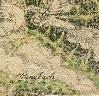 ![]() Karte: Schmitt'sche Karte von Südwestdeutschland, 1797. Kriegsarchiv Wien, Kartenabteilung Reproduktion Landesvermessungsamt Stuttgart |