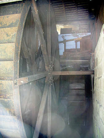 rechts hinten das kleine Rad für den Antrieb der Schmiedehämmer,