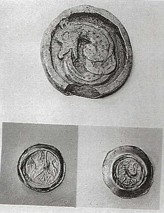 Spielstein mit dem für Lützelhardt charakteristischen Motiv des Drachen, der sich in den Schwanz beißt (oben)