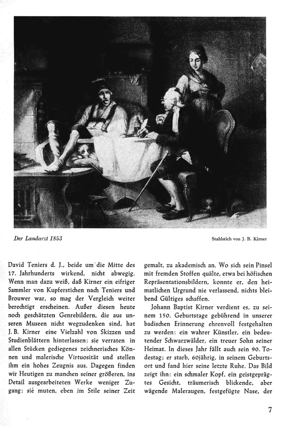 Johann Baptist Kirner, ein bedeutender Maler des Schwarzwaldes 1806 - 1866. Badische Heimat 36 (1956) S. 3 - 9