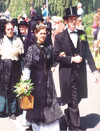 Markgräfler Hörnerkappe mit langen Seitenfransen.