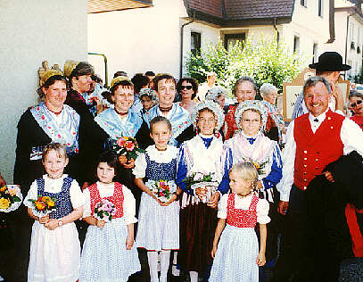 Welschensteinacher Tracht: Steinkappe mit besticktem Boden (unten) als Bestandteil der Festtracht, Kranz als Teil der Mädchentracht.