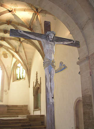 Werk und Stiftung des älteren Sylin aus Ulm, um 1500 Die Christusfigur ist mit beweglichen Armen gearbeitet, damit sie im Passionsspiel am Karfreitag in den Sarg gelegt werden konnte