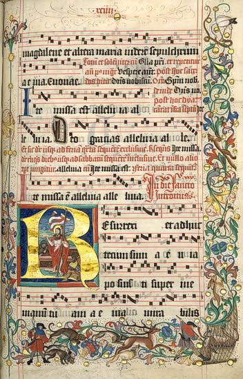 Die Anfangsseite des Osterpropriums aus einem Lorcher Chorbuch,