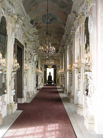 Westliche Galerie vom Thronsaal zum Westpavillon, 1714/15 durch Johann Driedrich Nette dem Alten Corps de Logis angefügt.