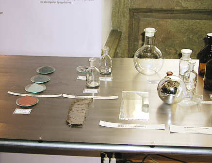 Glaskolben, versilberter Glaskolben und polierte Silberspiegelplatte
