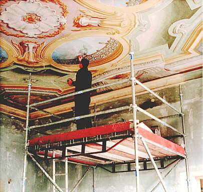 Neuer Hauptbau, 2. OG: ein Restaurator bei der Arbeit.
