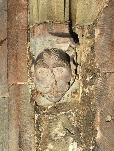 In den Ecken des 5/8-Chorabschlusses sind die Konsolen der Gewölberippen mit Maskenköpfen verziert, die man als apotropäisch (unheilabwehrend) charakterisieren kann.