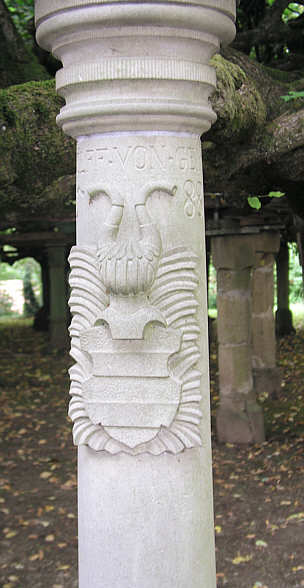 Säule des Wolff von Gemmingen, Herr im benachbarten Bürg, von 1588. Die Säulen wurden 1877 durch Kopien ersetzt.