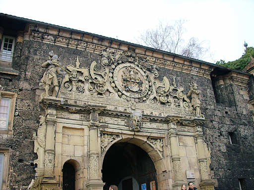 Das Tor ist triumphbogenartig gerahmt, die pompöse