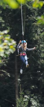 bis zu 60 km/h Geschwindigkeit an Seilrollen über Schwarzwaldtannen