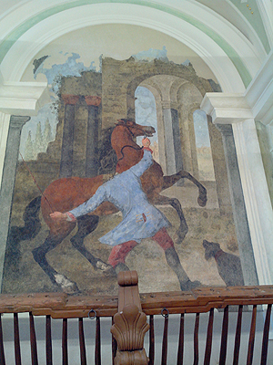 ausgestatteten Marstall. Bild links: Wandfresko nach der Restaurierung. Foto: ssg