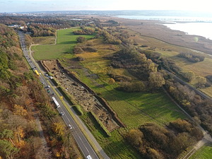 Reichenau, B33. Blick von Nordwesten Richtung Konstanz mit der Grabungsfläche an Bundestraße 33. Bildnachweis: Kreisarchäologie Landratsamt Konstanz, Foto: Jürgen Ehrle/ArchaeoTask