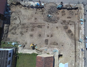 Aalen, Dekanstraße / An der Stadtkirche. Grabungsfläche mit frühneuzeitlichen Gebäudestrukturen. Foto: Landesamt für Denkmalpflege im RPS