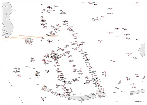 Da sich der Abbruch des nördlichen Gebäudes verzögert hat, konnte die Untersuchung hier noch nicht abgeschlossen werden und wird sich noch ins Jahr 2018 hin ziehen. Im Umfeld des südlichen Gebäudes konnten Strukturen festgestellt werden, die auf jeden Fall älter sind als die moderne Nutzung und handwerkliche Tätigkeiten belegen, die sich im Moment noch der Interpretation entziehen. Im Bereich des Mühlkanals konzentrierte sich die Untersuchung darauf, verschiedene Bauphasen des erst im späteren 20. Jahrhunderts völlig aufgegebenen Kanals zu dokumentieren und zu datieren, da sich die Frage stellte, ob die Darstellung des Bereichs in den Kieser’schen Forstkarten der 1680er Jahre, in der die im weiteren Bereich verorteten Mühlen als Bachmühlen ohne Existenz eines Mühlkanals dargestellt werden, doch den tatsächlichen Gegebenheiten entsprechen könnte. Durch die archäologische Untersuchung konnte das eindeutig widerlegt werden, da die Konstruktion der östlichen Kanalwange eichene Hölzer enthielt, die dendrochronologisch auf die Jahre um 1523 datiert werden können.