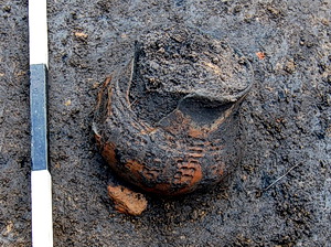 Vollständige erhaltenes Rössener Gefäß – Beigabe einer birituellen Doppelbestattung. Foto: Archäologie-Zentrum GmbH