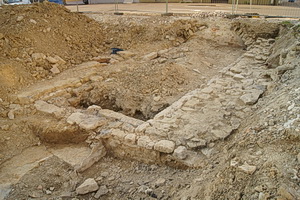 Stadtmauerfundament mit daran angebautem frühneuzeitlichem Keller.