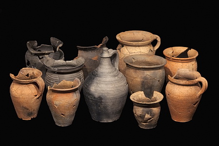 Unten: Keramikgefäße aus Brunnen/Latrinen unterschiedlicher Zeitstellung. Foto: Christoph Schwarzer / Landesamt für Denkmalpflege im RP Stuttgart