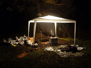 Oben: Nachtschicht im Grabungsschnitt am Hirenseemoos. Foto: UWARC
