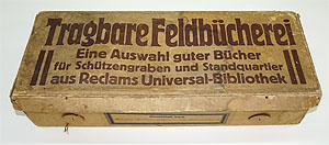 Tragbare Feldbücherei aus dem Ersten Weltkrieg, die jeweils 100 Nummer der Universal-Bibliothek enthielt