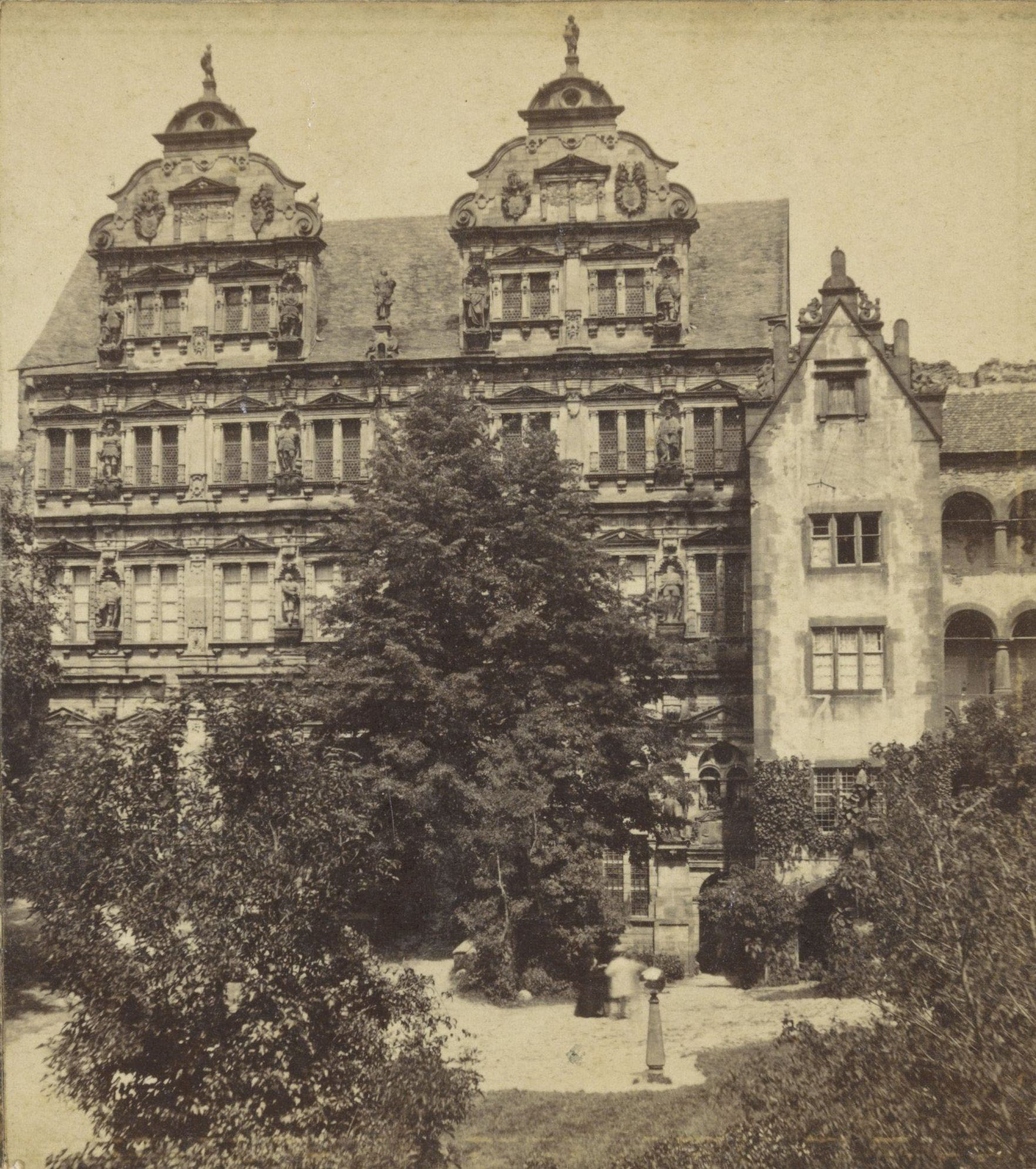 Links: Friedrichsbau um 1870. Albuminabzug. Rijksmuseum Amsterdam. Wikimedia Commons