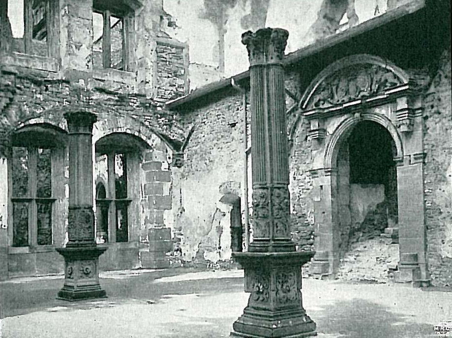 Oben: Schlosshof mit Herrentafelstubenbau und Ruprechtsbau. 1895. Bild: Vermögen und Bau BW /SSG