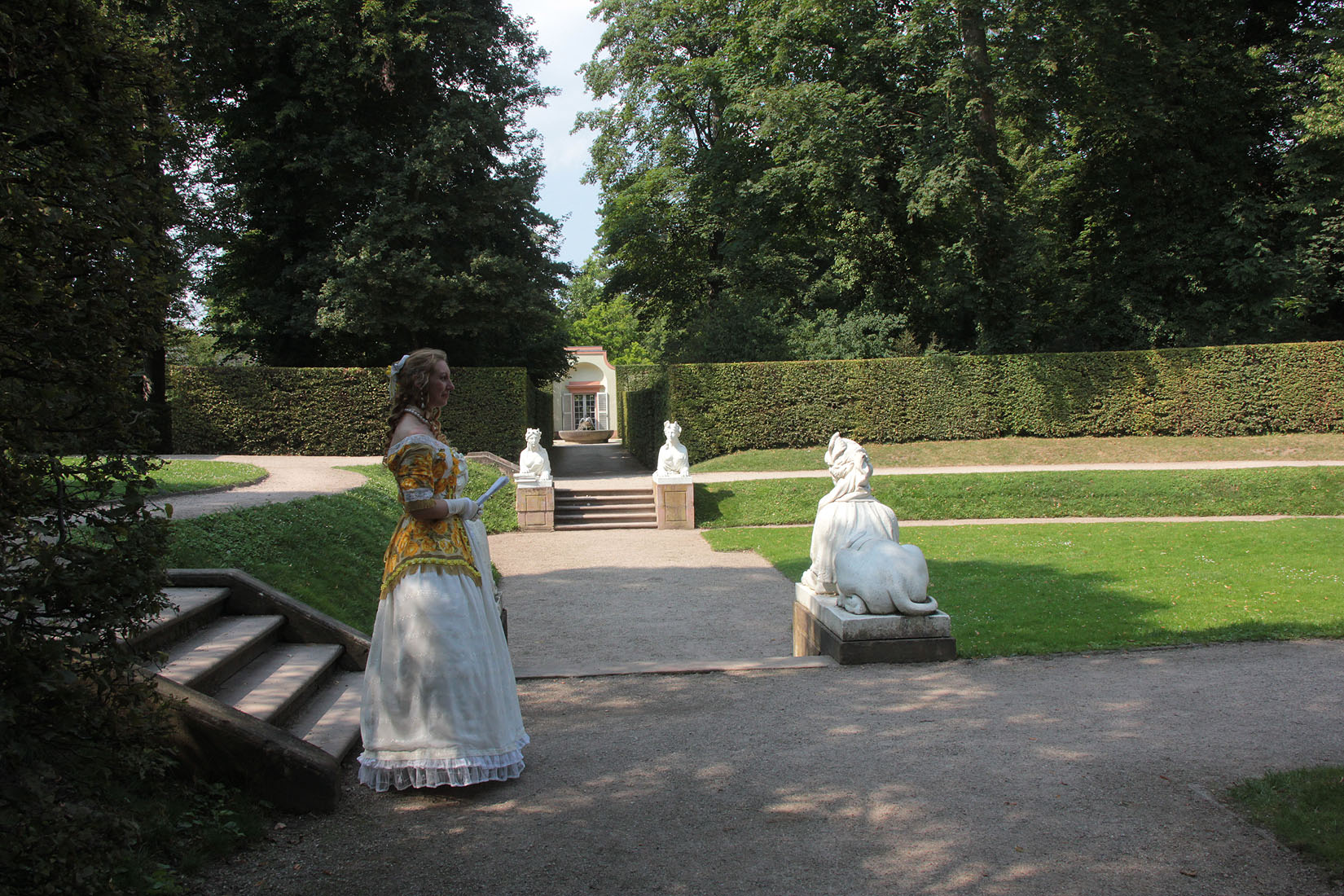 Unten: Mit der Hofdame im Naturtheater des Kurfürsten Carl Theodor