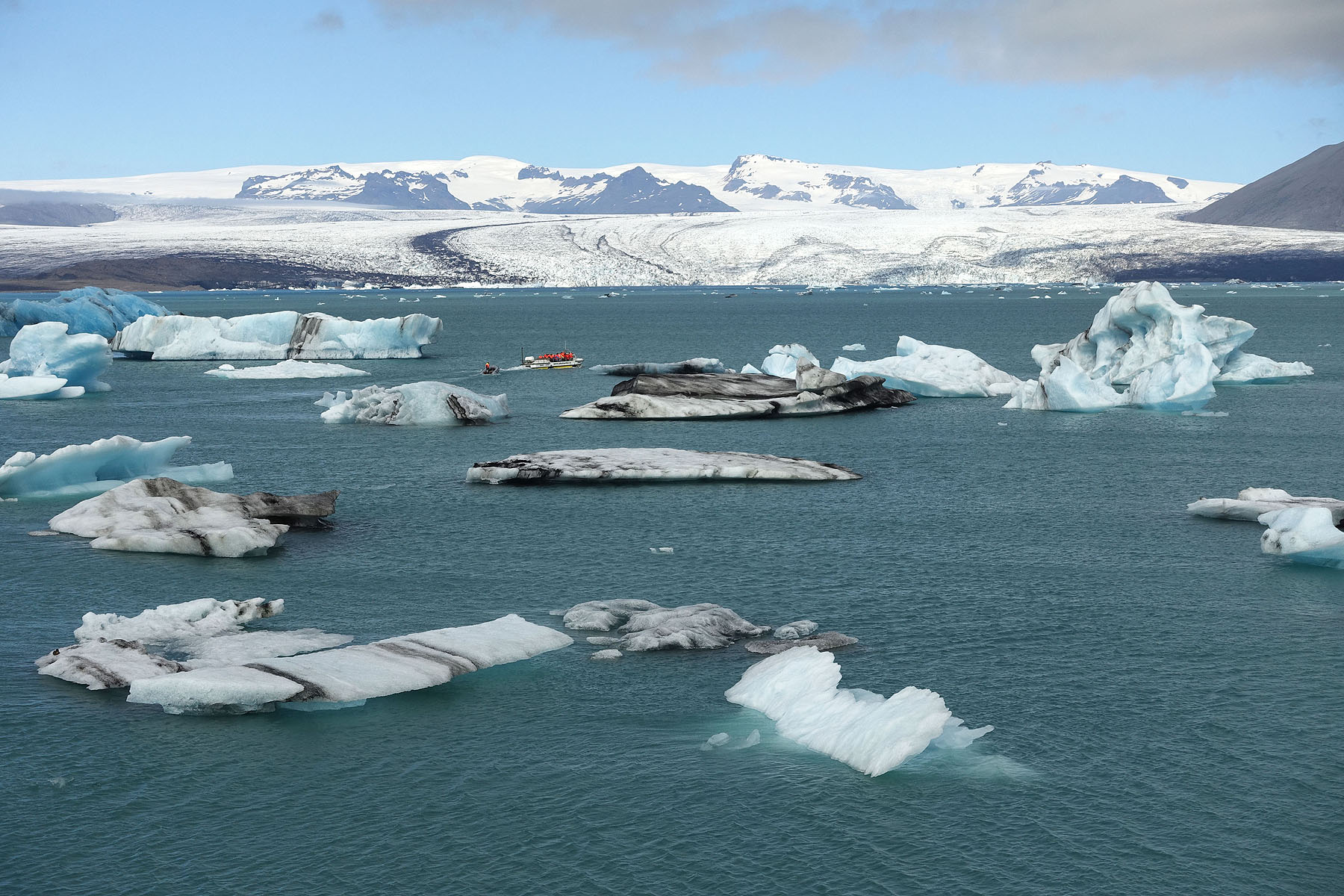 Unten: Auch die Gletscher Islands - im Bild die Gletscherlagune Joekulsarlon an der Südküste - haben in den vergangenen 20 Jahren viel Masse verloren.