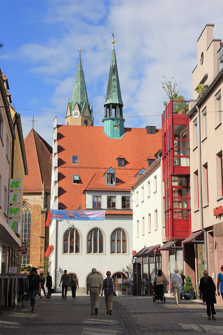 Neumarkt: Blick aus der Klostergasse mit Rathaus und Stadtkirche St. Johannes