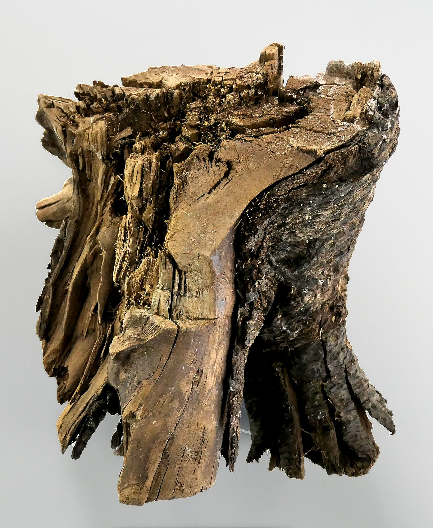 Baumstumpf mit Bearbeitungsspuren, der neben zwei weiteren Bäumen zur Datierung verwendet wurde © Margot Kuitems 2018