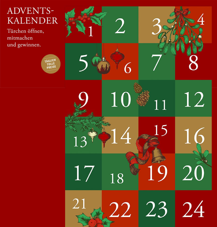 Laufzeit: 1. Dezember, 00:00 Uhr bis 24. Dezember, 23:59 Uhr