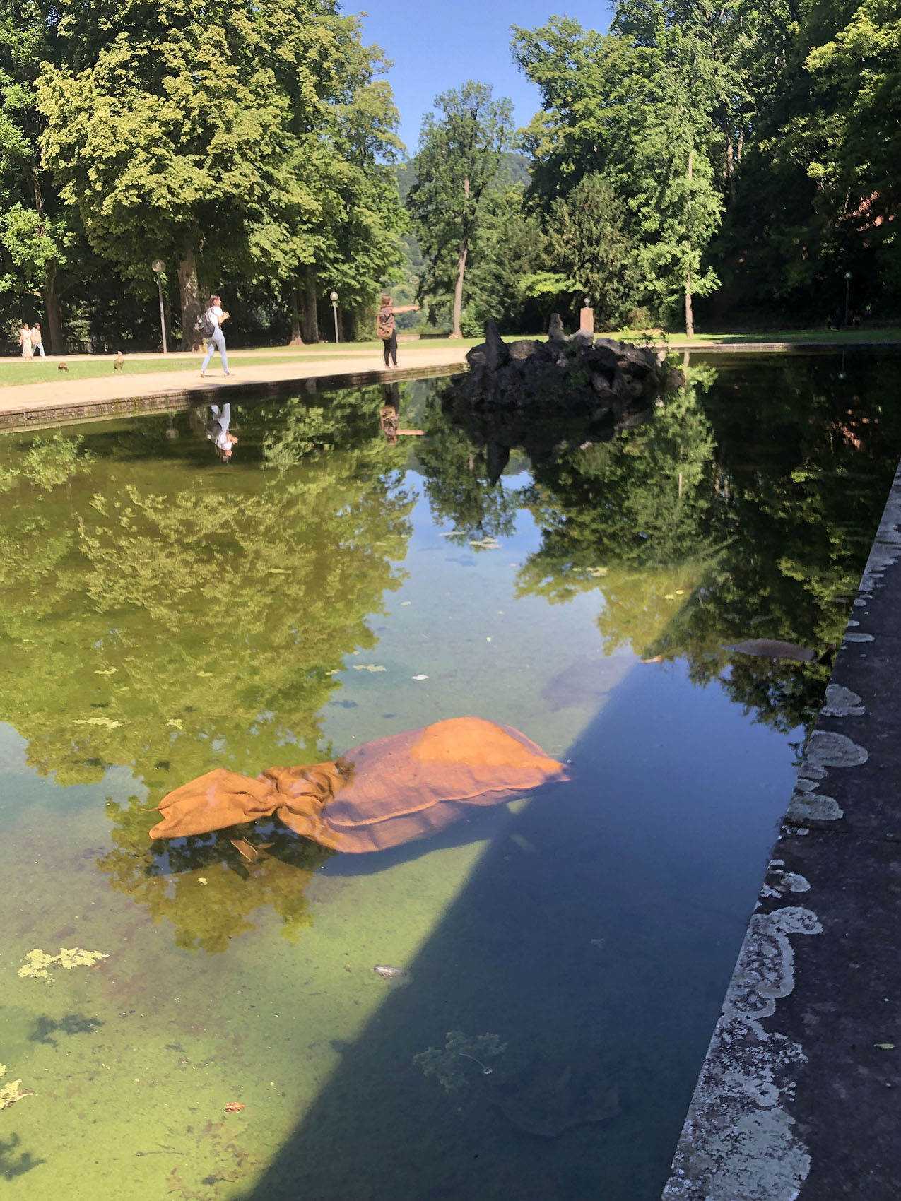 Schlossgarten Heidelberg: Vater Rhein mit Becken. Die Wasserspiele funktionieren aktuell nicht mehr. Foto: kulturer.beWasserbecken mit holzgefülltem Juresack. Foto: Michael Bös, SSG"Hüpferlinge", die eben dem Wasser entstiegenen Jungen der Erdkröten. Foto: Micheal Bös"Hüpferlinge", die eben dem Wasser entstiegenen Jungen der Erdkröten. Foto: Micheal BösSchlossgarten Heidelberg: Vater Rhein mit Becken. Die Wasserspiele funktionieren aktuell nicht mehr. Foto: kulturer.be