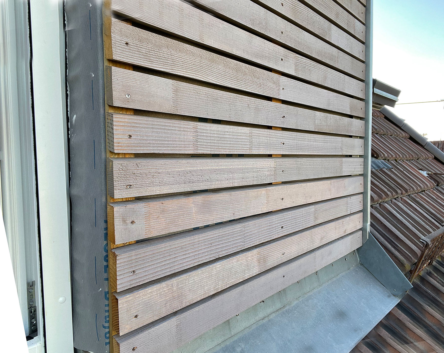 Auch außerhalb des Waldes kann Kohlenstoff langfristig im Holz gespeichert bleiben. Gaubenverkleidung 2020. Foto: kulturer.be