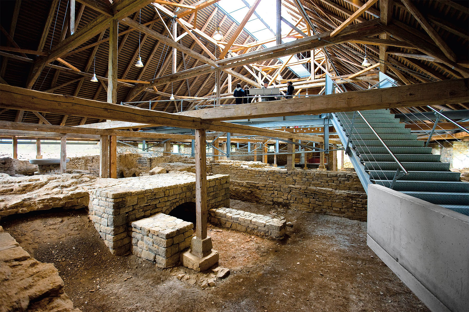 Wo die Römer herrschten, dorthin brachten sie ihre Lebensart. Und so kam die Badekultur des Mittelmeerraums auch ins heutige Deutschland – in Hüfingen lässt sich sie auf rund 570 Quadratmetern entdecken. Auf freitragenden Metallstegen können sich die Besucherinnen und Besucher eine Übersicht über die Ausgrabung und die Badekultur der Römer verschaffen. Die Badruine zeigt ein ausgeklügeltes System: Im östlichen Teil des Gebäudes befand sich der Heizraum. Die Warmluftheizung erwärmte die einzelnen Bereiche des Bades genau – noch immer ist sie gut zu erkennen. Die alten Römer betraten das Bad durch das Apodyterium, den Umkleide- und Ruheraum. Im lauwarmen Tepidarium reinigten sie sich mit Salbölen und Schabern. Danach wechselten sie in den Warmbaderaum. Im Caldarium herrschten 35 Grad Celsius. Ein Kaltwasserbrunnen sorgte für Erfrischung in der Hitze. Der Brunnen mit der großen runden Steinschale ist rekonstruiert – viel Vorstellungskraft ist daher nicht notwendig.