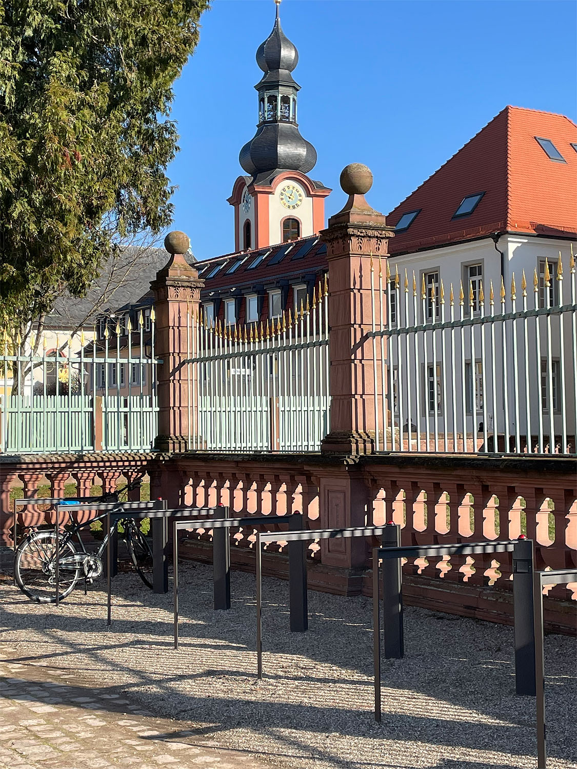 (ssg) In der historischen Umgebung von Schloss Schwetzingen sind sie ein minimalistisch-moderner und zugleich ästhetischer Anblick: Seit vergangener Woche stehen 24 neue, komfortable Fahrradabstellplätze im Ehrenhof für alle zur Verfügung, die das Monument mit E-Bike oder Fahrrad ansteuern. Mit dem landesweiten Projekt „Fahrradfreundliche Monumente“ bauen die Staatlichen Schlôsser und Gärten Baden-Württemberg die Infrastruktur und Angebote für Radfahrerinnen und Radfahrer aus