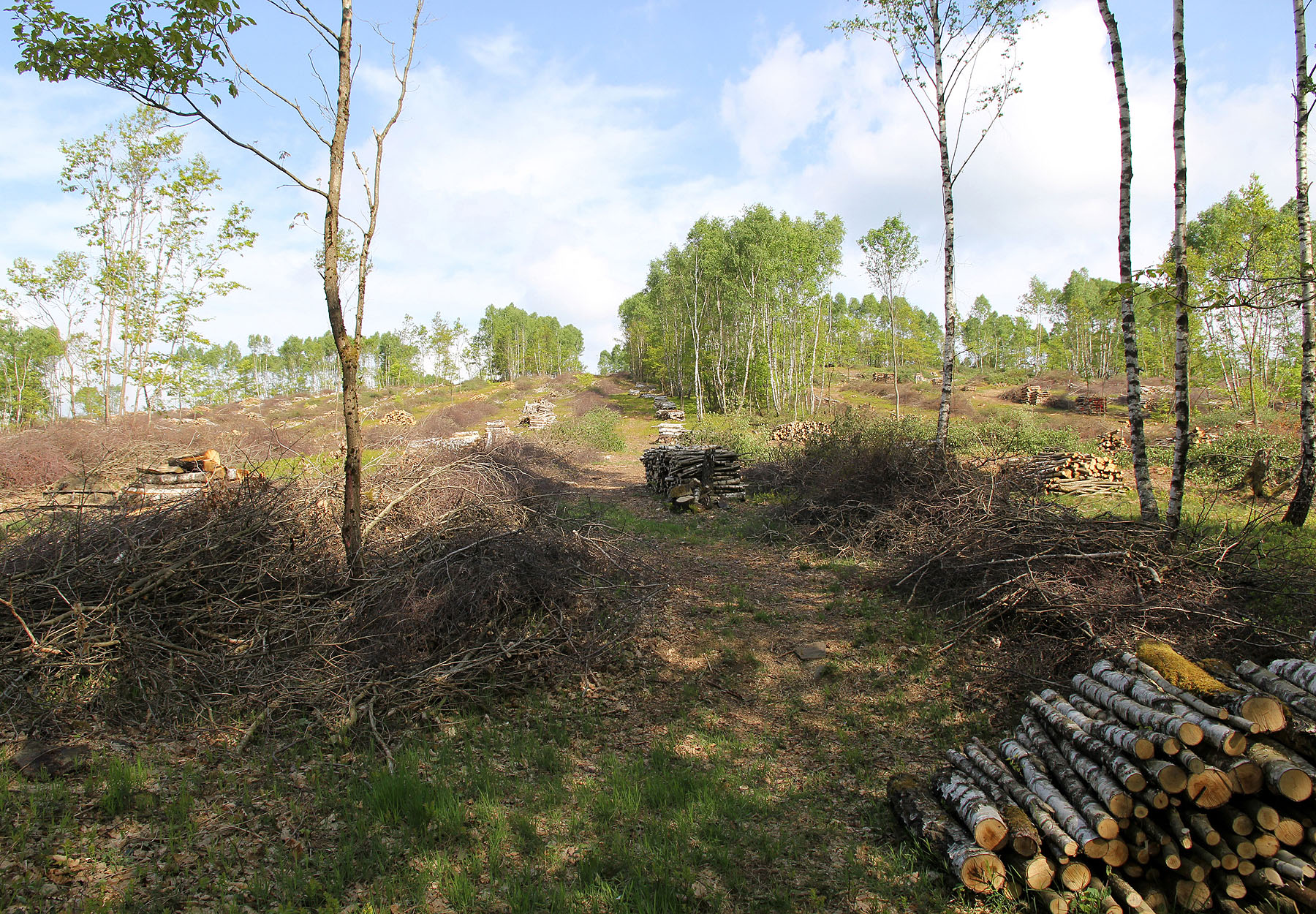 Frisch eingeschlagenes Brennholz in den "Haubergen" des hessischen Lahn-Dill-Berglandes. Foto: Johannes Kamp