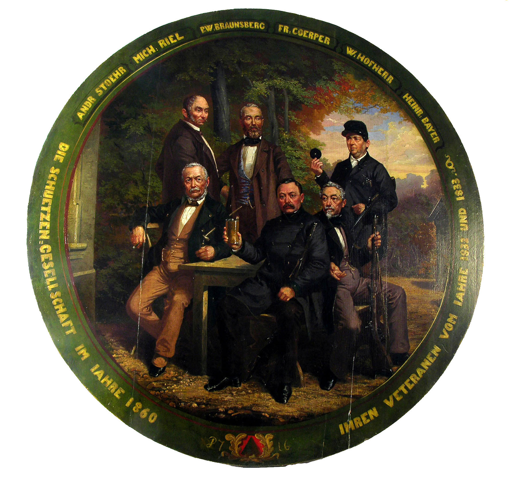 Mitte: Schützenscheibe zur Erinnerung an die Hambacher Bewegung, 1860. Erkenbert-Museum Frankenthal