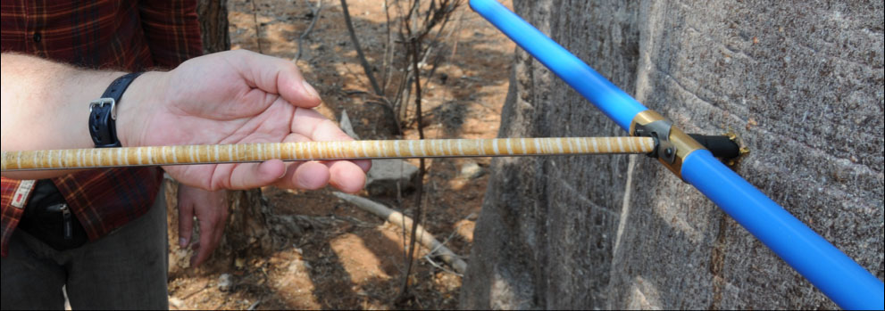 Minimalinvasive Entnahme einer Holzprobe aus einem lebenden Baumstamm mittels eines Zuwachsbohrers (Abbildung: G. Helle / GFZ)