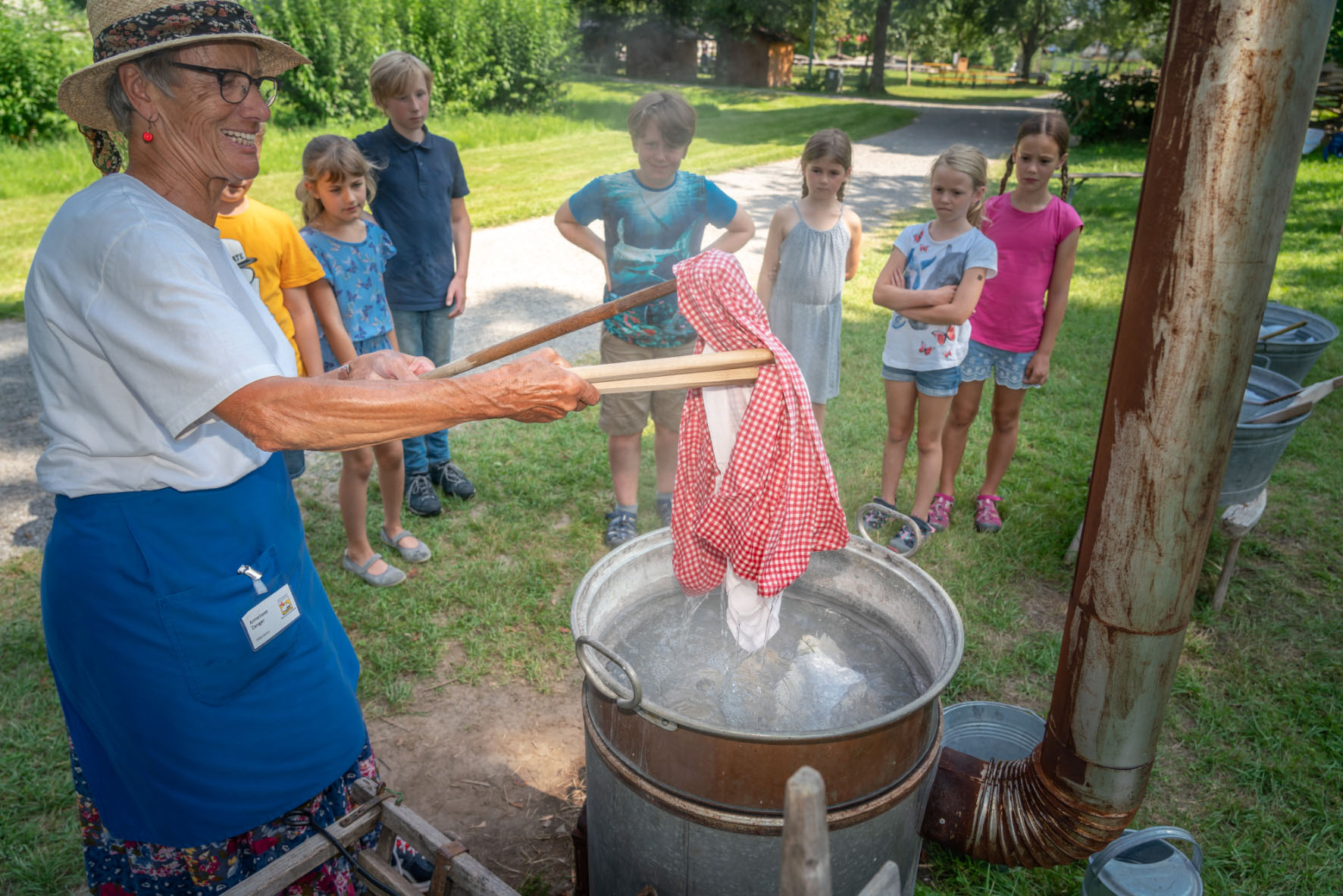 „Die große Wäsche“ lautet das Thema am Sonntag, den 11. Juni, im Vogtsbauernhof. Die Museumsgäste erwartet von 11 bis 17 Uhr Aktionen rund um die Themen Wäscherei und Textilhandwerk. So lädt Museumsmitarbeiterin Andrea Kronenwitter um 11 Uhr zur freien Sonderführung „An der Wäscheleine“. Die Gutacherin erzählt dabei, was es zwischen der Stehbrunzhose als Damen-Unterwäsche bis zur feierlichen Festtagstracht zum Anziehen gab. Ab 13 Uhr erläutert Webmeisterin Gabriela Martin neben der Geschichte des Webens die Geräte und Vorrichtungen, mit denen einstmals Stoffe hergestellt wurden.