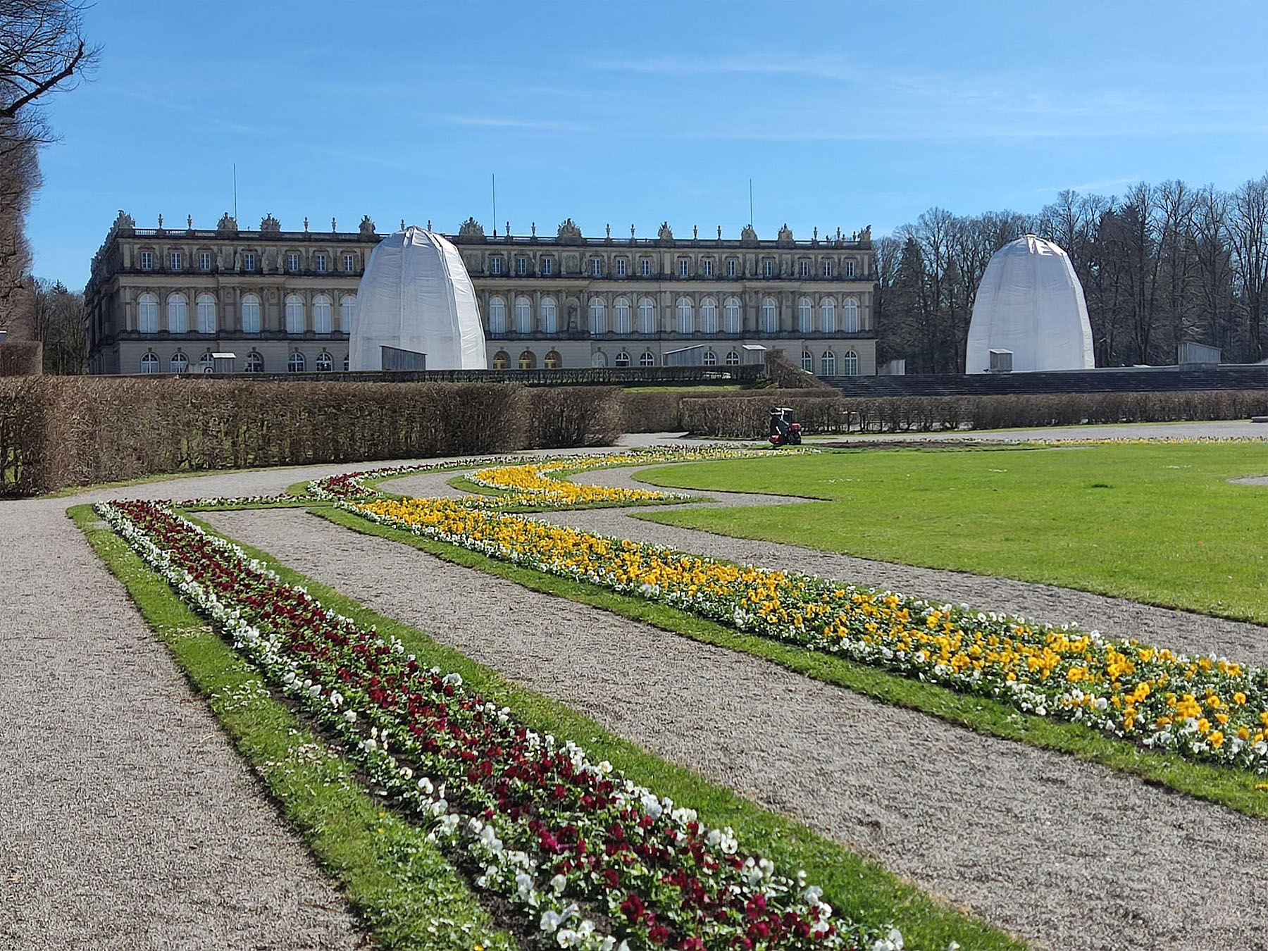 Frisch bepflanzte Beete im Parterre vor dem Neuen Schloss Herrenchiemsee. © Bayerische Schlösserverwaltung,