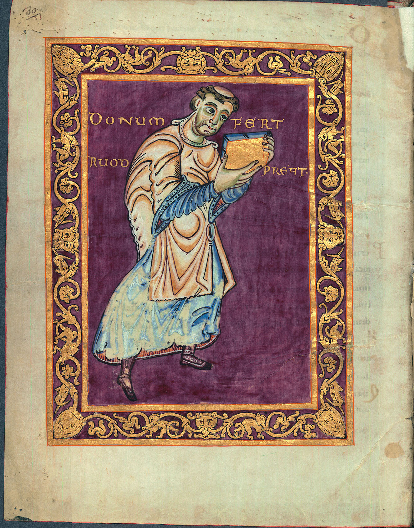 „Der Egbert-Psalter wurde im späten 10. Jahrhundert, zwischen 980 und 993, für Erzbischof Egbert von Trier gefertigt. Eine herausragende Reichenauer Besonderheit sind die beiden Widmungsseiten: Der namentlich genannte Reichenauer Mönch Ruotprecht, nach dem eine der Handschriftengruppen des Inselklosters benannt wurde, ist links ganzseitig bei der Übergabe des fertigen Buches an den rechts thronenden Trierer Erzbischof zu sehen. Dieser reicht das Manuskript auf der darauffolgenden Doppelseite weiter an den heiligen Petrus, den Patron und legendären Gründer des Trierer Bistums. Die Hauptschreiber vieler Reichenauer Werke sind uns auf ähnliche Weise mit Bild und Namen bekannt und treten so aus der Anonymität heraus,“ ergänzt Dr. Olaf Siart, Projektleiter und Kurator der Ausstellung.