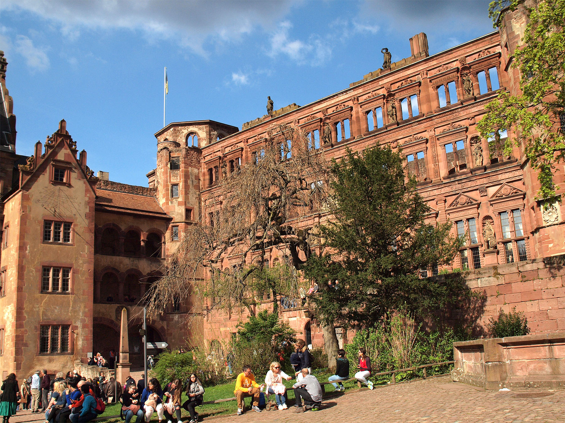Schloss Heidelberg, Ottheinrichsbau mit erschöpften Besuchern. Foto: kultuer.be