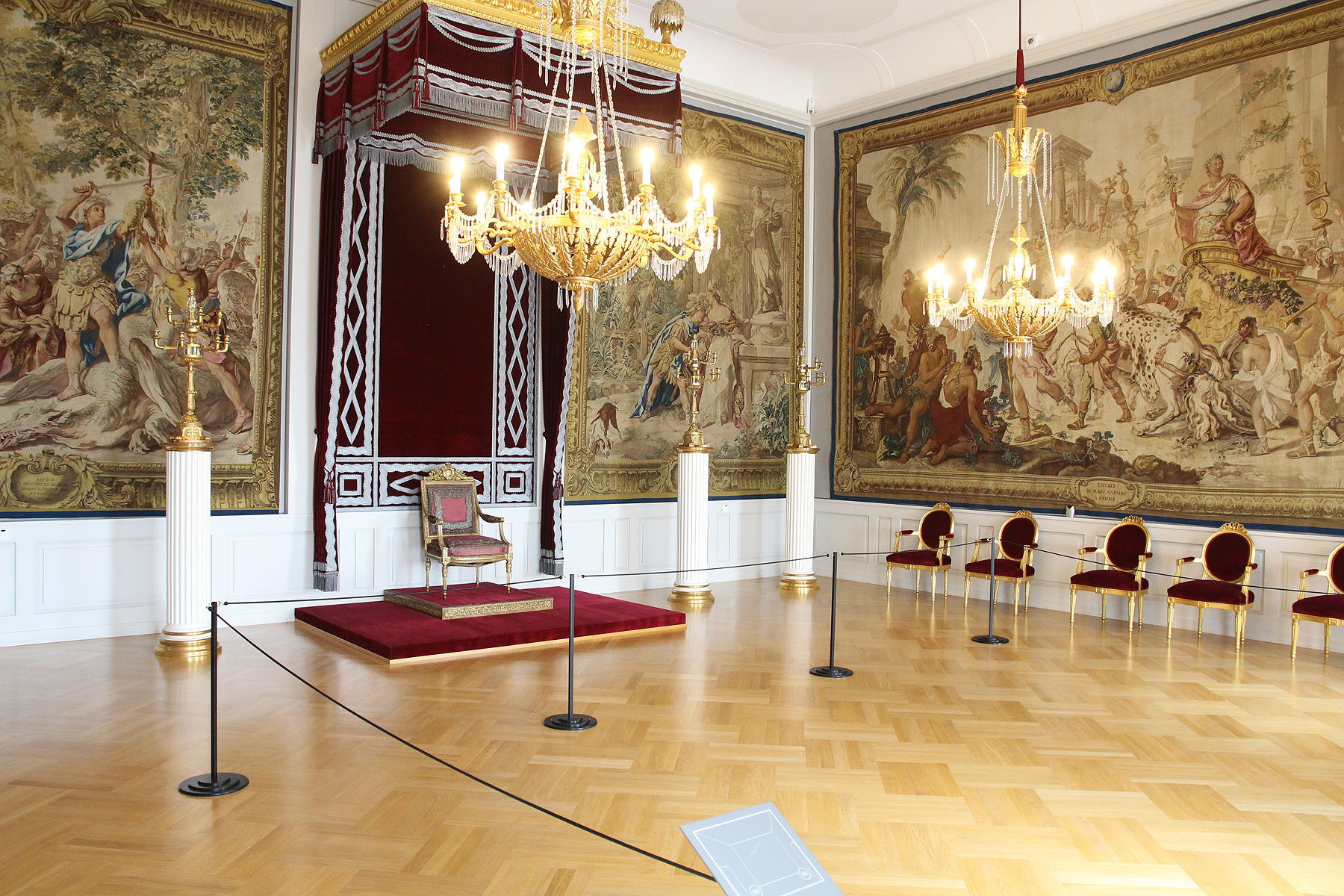 Barockschloss Mannheim, Thronsaal des badischen Großherzogs (19. Jh.) mit den Gobelins des 18. Jahrunderts.