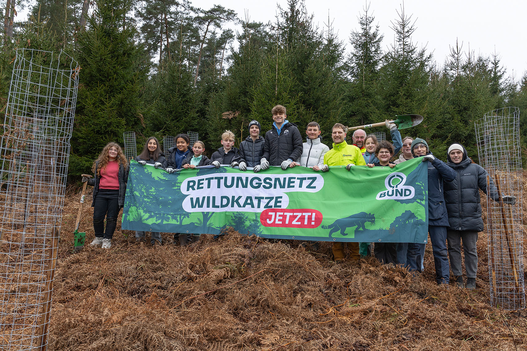 Eberbach im Odenwald ist seit 2022 nachweislich Wildkatzengebiet. Das gefährdete Wildtier galt in Baden-Württemberg hundert Jahre lang als ausgerottet. Der BUND setzt im Projekt seit 2022 deutschlandweit Naturschutzmaßnahmen für die Europäische Wildkatze gemeinsam mit Verbündeten aus den Bereichen Forst, Jagd, Landwirtschaft und Gemeinden um. Im Odenwald ist die Pflanzung heute die erste Maßnahme speziell für das Waldtier.