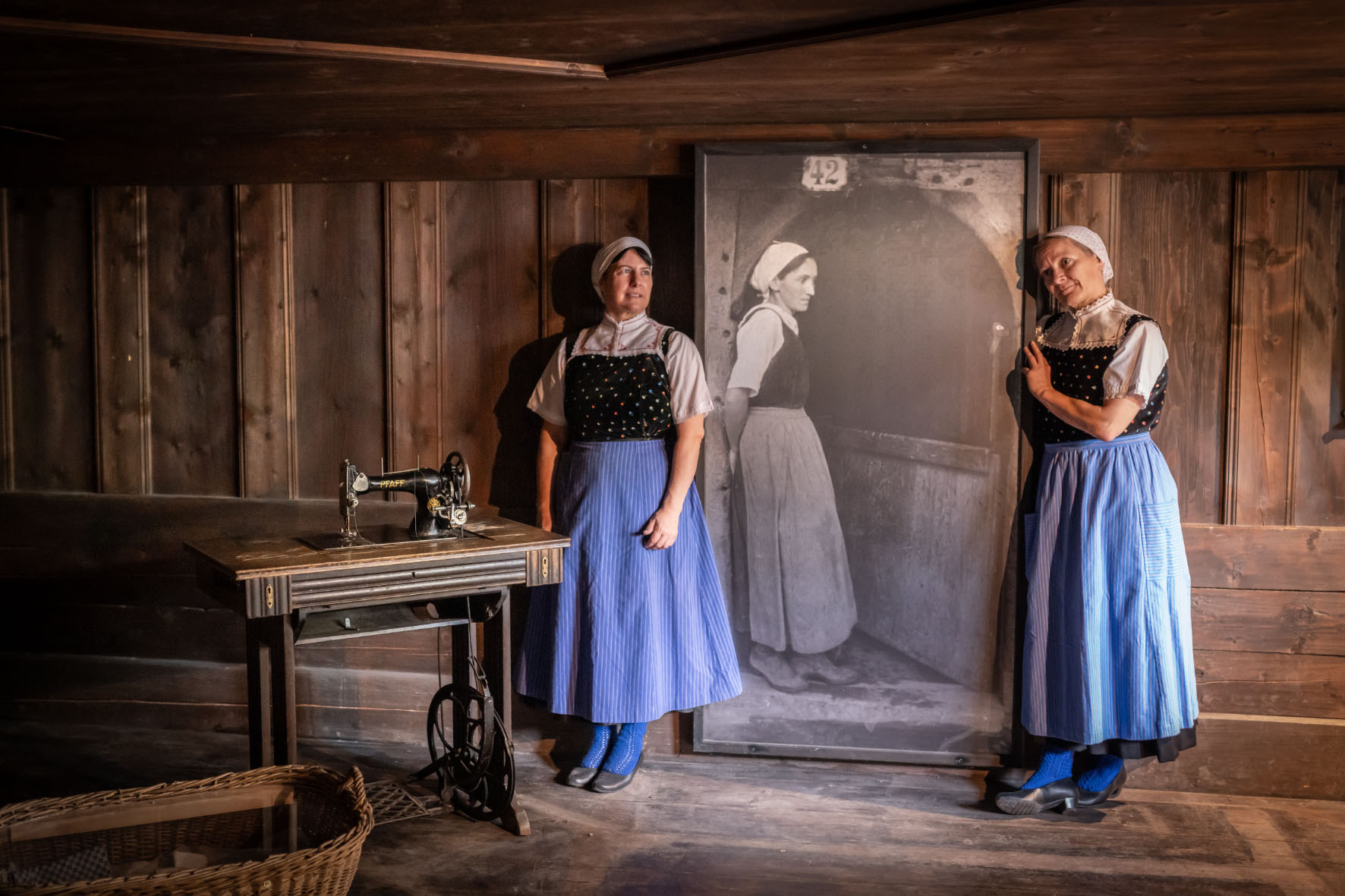 In ihrer lebhaften Sonderführung am 23. Juni um 11 Uhr schlüpfen Martina Lehmann und Andrea Kronenwitter aus Gutach in die Rolle der Schondelmaier-Christie, eine der letzten Bewohnerinnen des Vogtsbauernhofs. Foto: Schwarzwälder Freilichtmuseum Vogtsbauernhof, Hans-Jörg Haas