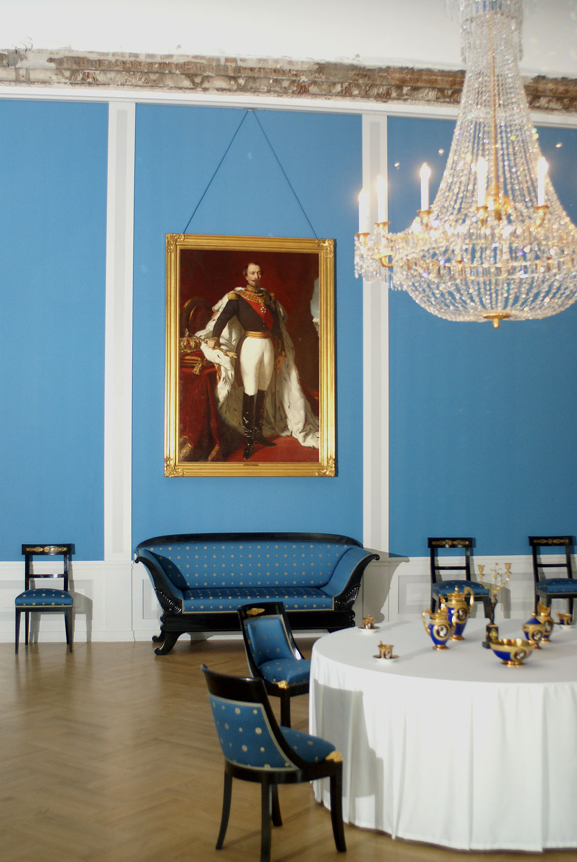 Schloss Mannheim, Blauer Salon. Aufstellung 2007. An der Wand das Bild Napoleons III., des Neffen der Stephanie.